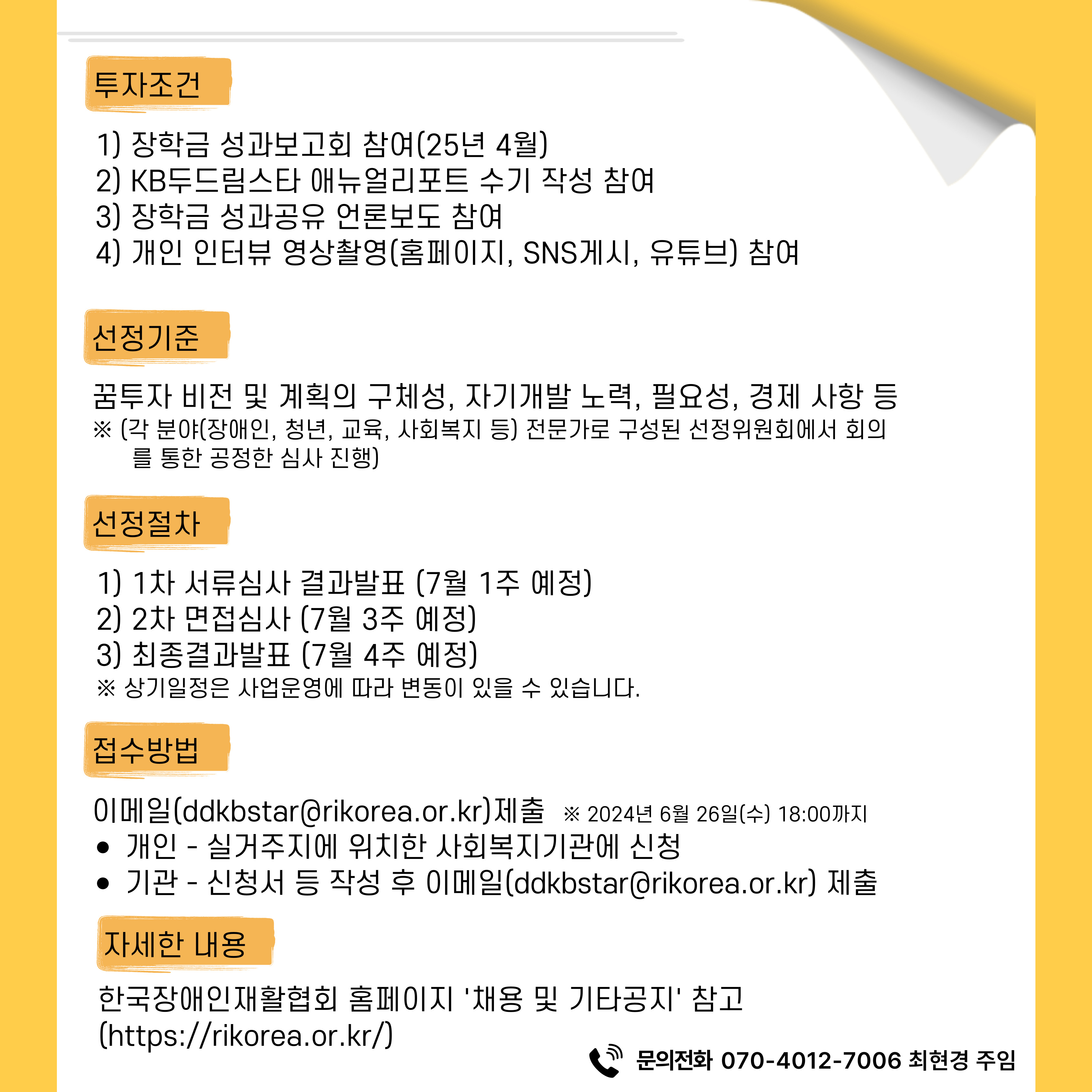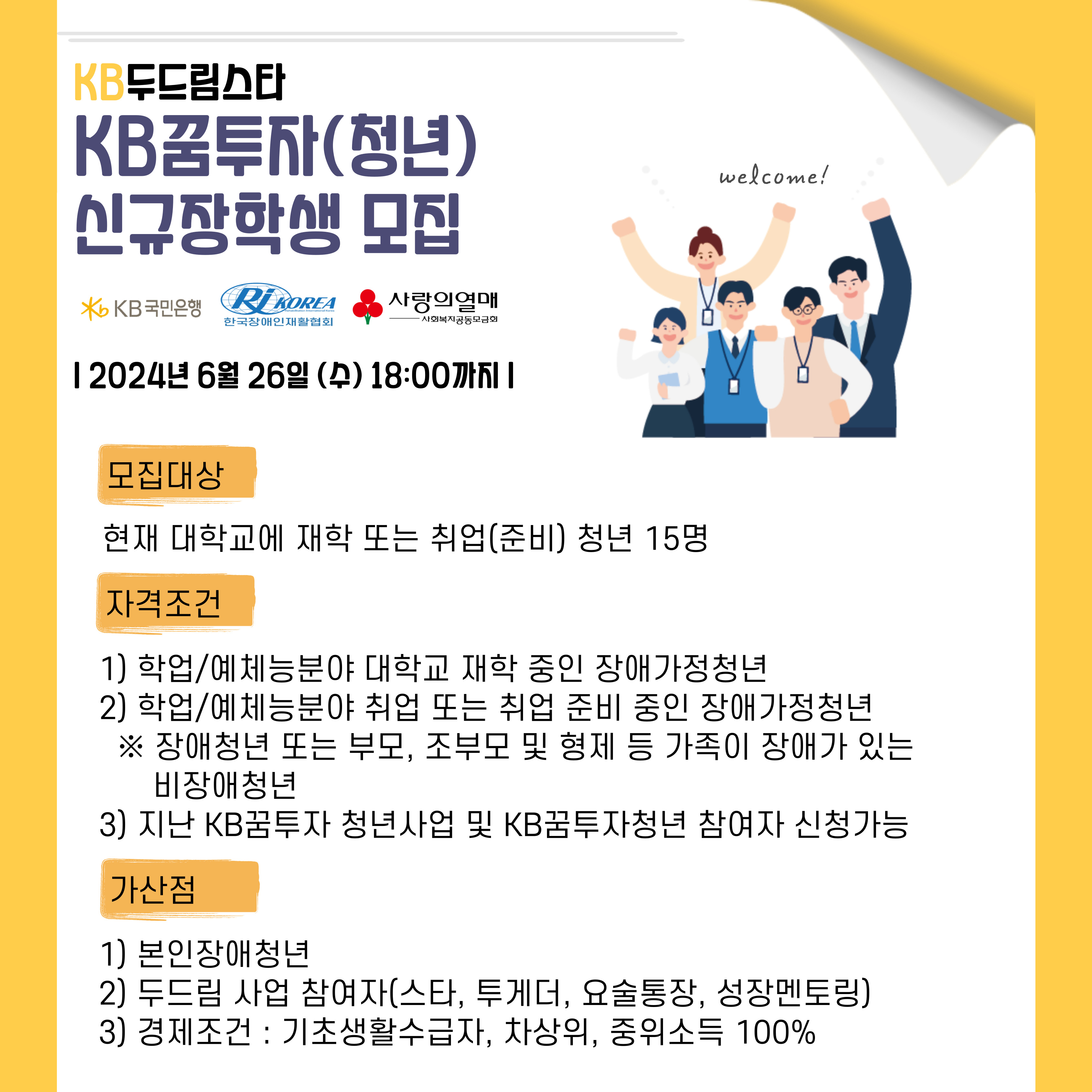 | 제목 | (한국장애인재활협회) KB꿈투자(청년) 신규장학생 모집 | ||||