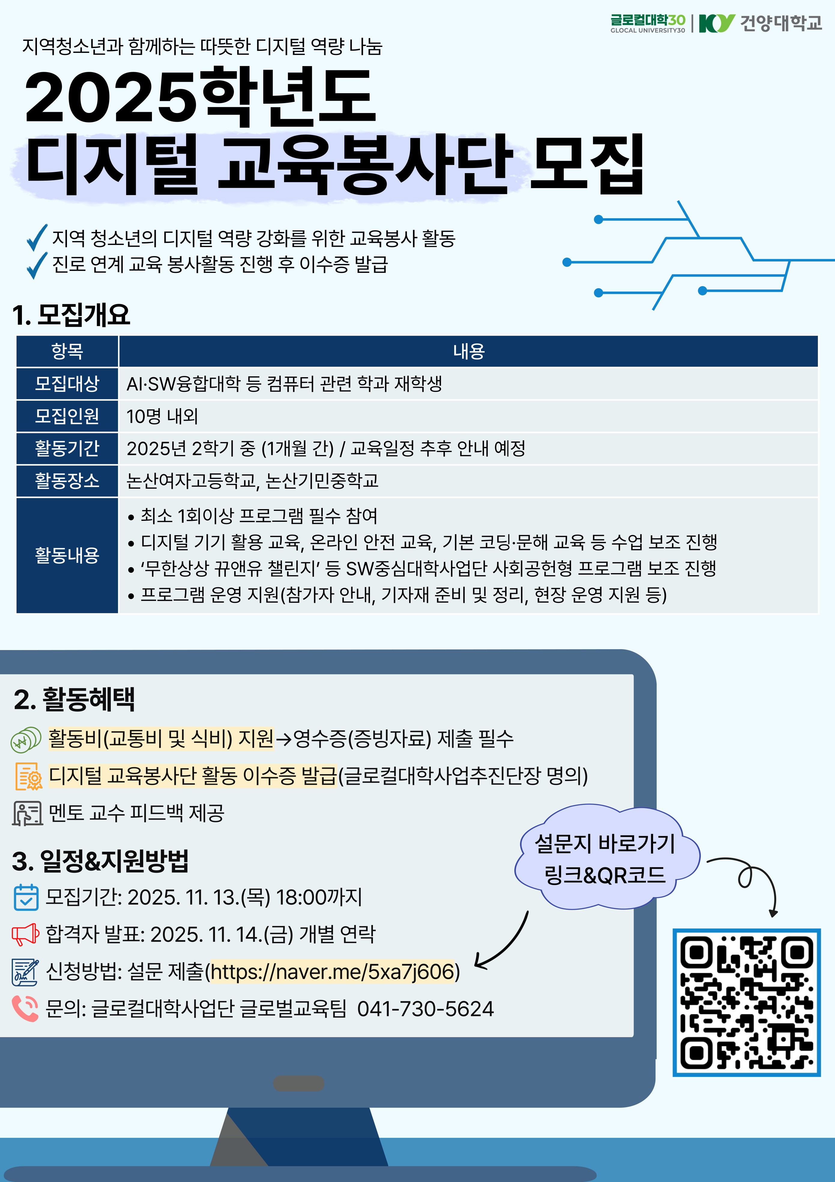 | 제목 | 2025학년도 디지털 교육봉사단 모집 공고 | ||||