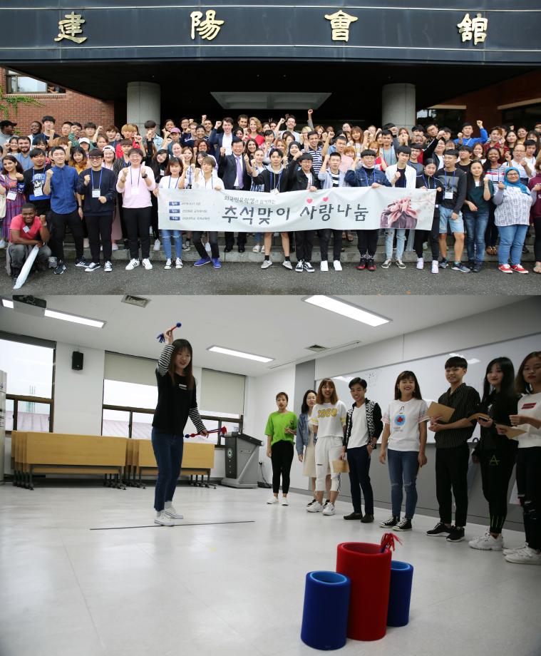 중국·일본·타이완·캄보디아·몽골·아르메니아 등 세계 각지에서 온 외국인 유학생 140여명이 참가한 가운데 송편빚기, 제기차기, 딱지치기, 전통팽이 돌리기, 윷놀이, 공기놀이, 투호놀이, 한복체험 등 다양한 전통문화 체험이 진행됐다.