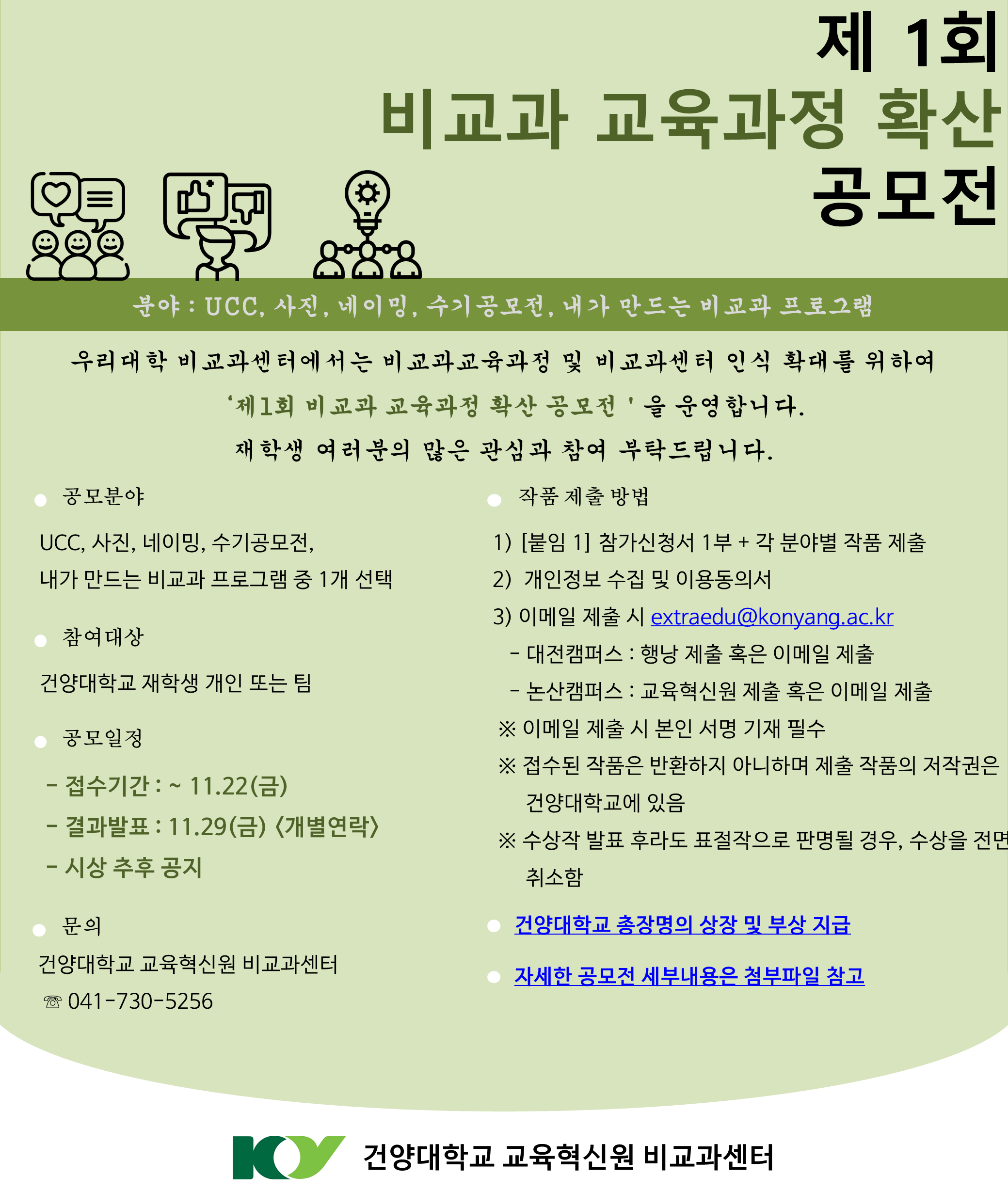 | 제목 | [2차안내]비교과 교육과정 확산 공모전 안내 | ||||