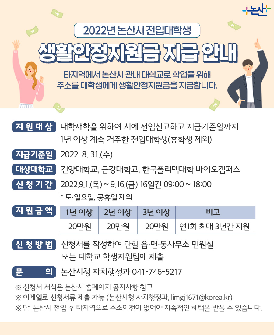 (공고문) 2022년 전입대학생 생활안정지원금.hwp