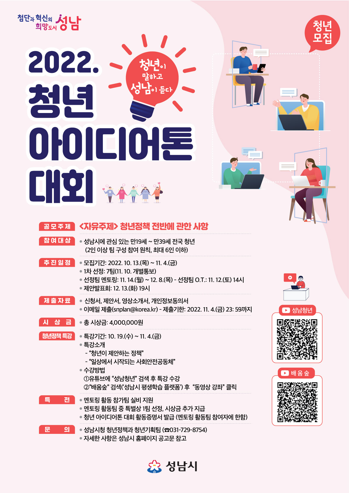 | 제목 | 2022 "성남시 청년 아이디어톤 대회" 개최 안내 | ||||