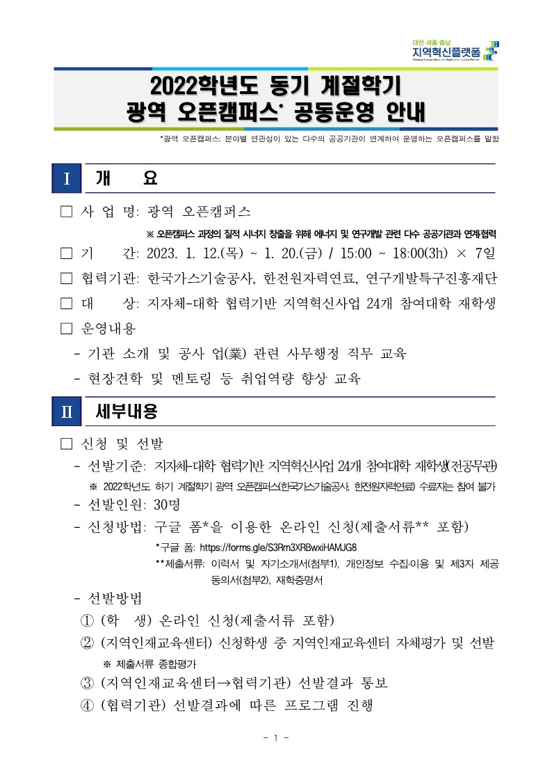 붙임 1. 2022학년도 동기 계절학기 광역 오픈캠퍼스 공동운영 안내.pdf