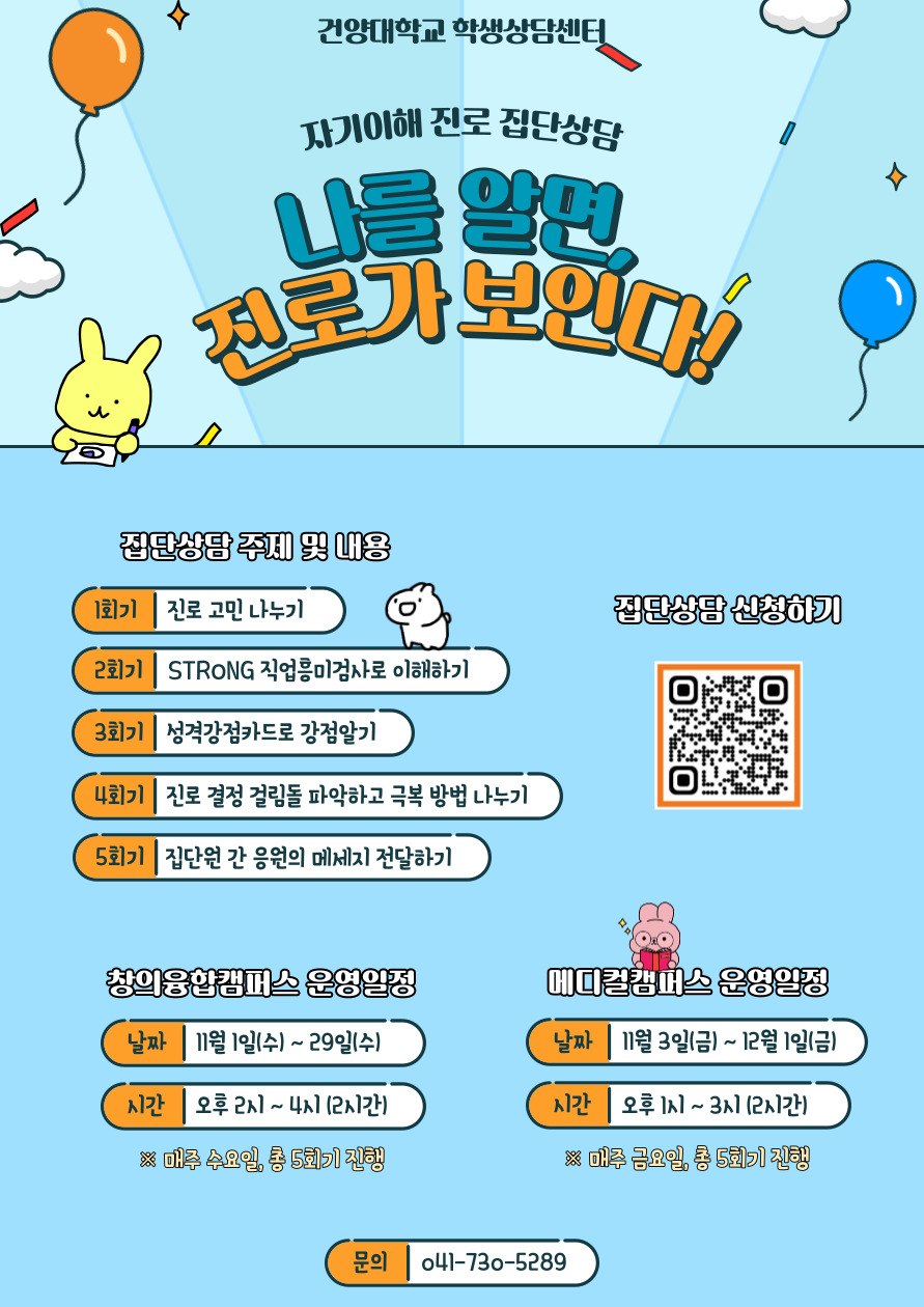 | 제목 | [학생상담센터] 자기이해 진로 집단상담, 나를 알면 진로가 보인다! | ||||