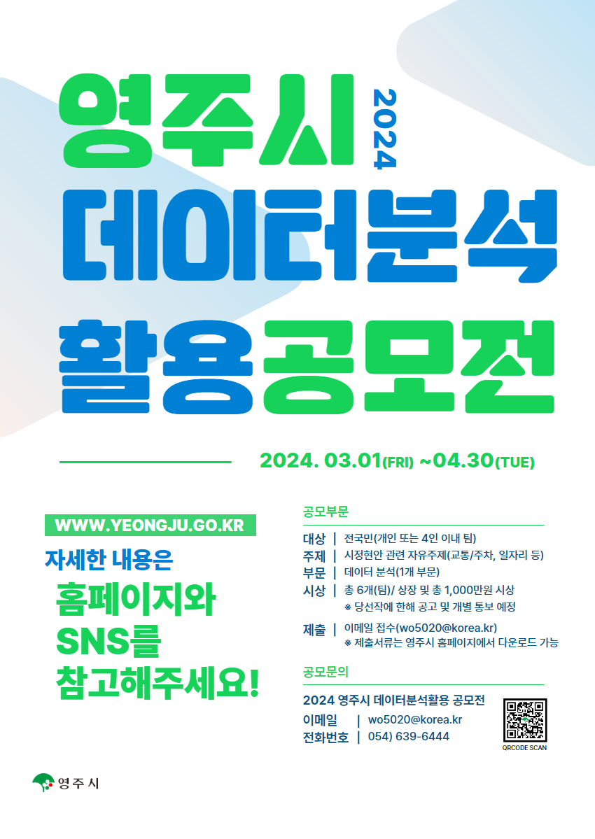 | 제목 | 2024년 영주시 데이터 분석·활용 공모전 홍보 | ||||