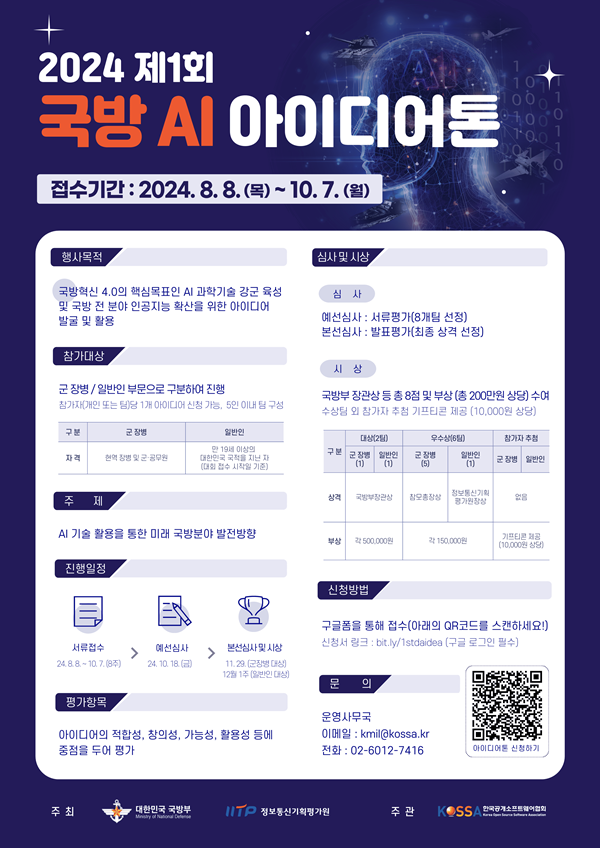 『 국방 AI 아이디어톤 』글의 상세내용을 확인하는 표로 제목, 부서명, 등록일, 조회, 첨부, 내용으로 나뉘어 설명합니다.
