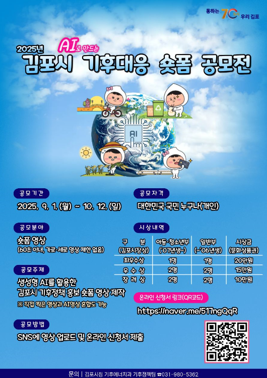 『 2025년 김포시 AI로 만드는 기후대응 숏폼 공모전 』글의 상세내용을 확인하는 표로 제목, 부서명, 등록일, 조회, 첨부, 내용으로 나뉘어 설명합니다.