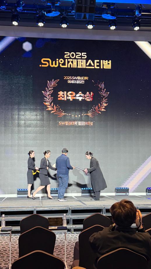 | 제목 | [수상] ‘2025 SW인재페스티벌’ 에세이 공모전 최우수상 수상_2025.11.27 | ||||
