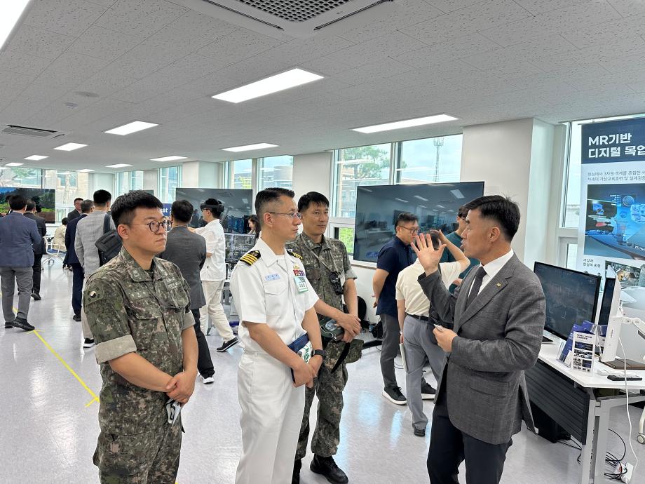 해군 업무관계자 2025년 비젼선포식 방문 합성환경기반 국방실증지원센터 운영 개념 설명 |