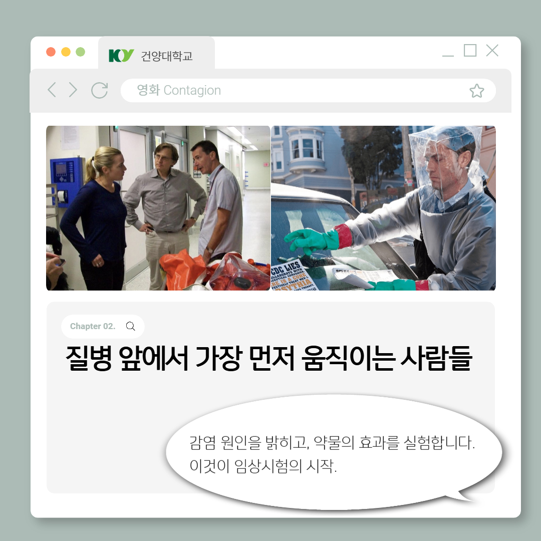 | 제목 | [카드뉴스] 영화 Contagion으로 알아보는 질병을 넘어서 생명으로! | ||||